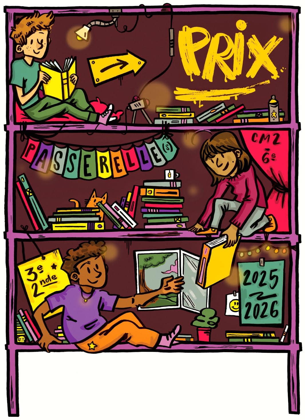 Chaque établissement inscrit au Prix Passerelle(s) reçoit un affiche et un marque-page par élève.Vous pouvez télécharger ici :